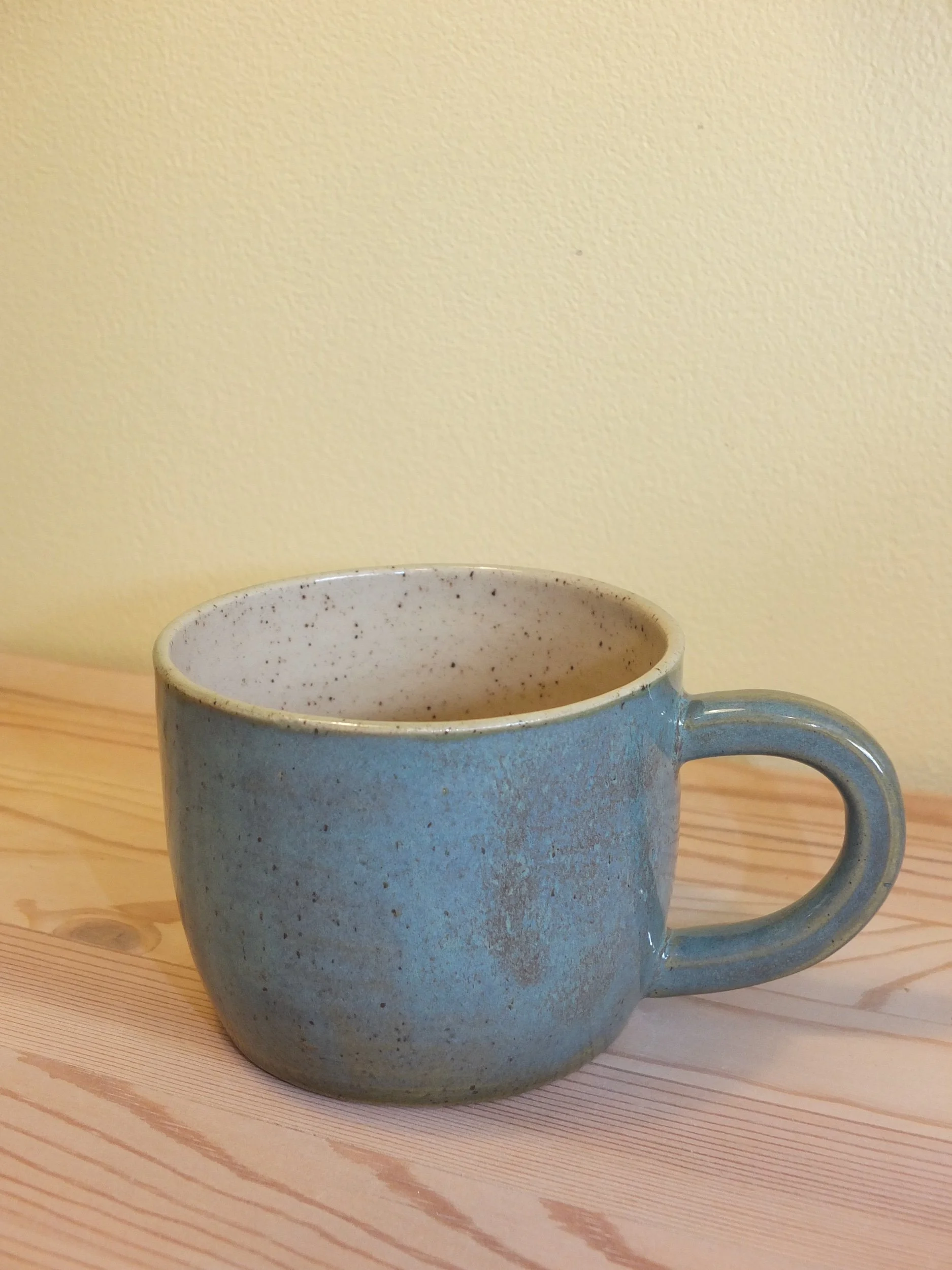 Made from high quality clay. Dishwasher and microwave safe, but recommended hand wash for longevity! Holds 18oz.